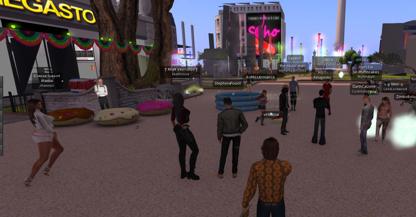 いろんな人や建物を見たり、他のプレイヤーと話したり、お店で買い物をしたり、『リンデンドル』という仮装通貨もあって、物の売り買いもできました。